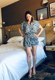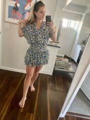 I wore this dress probably 3 times in 1 month. To a day time boat event, to a dinner and to a lunch! I did feel that the dress was a bit short and I’m only 5’1. I wore small shorts under it each time because I wasn’t comfortable walking around showing too much leg. But definitely recommend renting.
