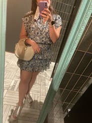 Got many compliments when I wore this dress! On the shorter side but one of my favorite dresses to rent. Looks cute with booties or platform sandal!