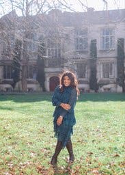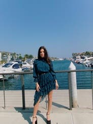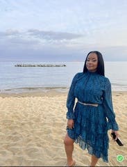 Close your eyes and imagine dancing the night away like no one is watching. That is where this dress will take you. I felt so pretty in this dress. I paired It with a brown RTR blazer, a waist belt for sure, thigh-high boots, and a RTR handbag.
