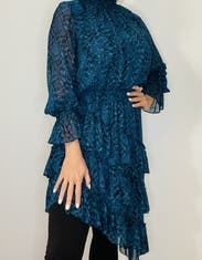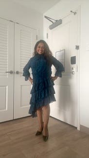 This dress got everyone's attention and only a million compliments! Broke the ice at a new office that I came into and started a conversation right away. Felt flirty and fun. It is a little loose in the chest area but I love how multi layered it is!
