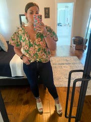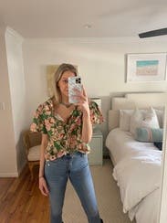 I wore this top almost every day I had it! It’s great paired with the skirt or with jeans! It’s a little low cut so i had to keep pulling it back. That is my only grievance on this one though! Also if you want this to fit you like it does on the model (boxier) I would size up! But your normal size will look good too!
