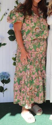 I ordered the matching set. The top was fun and bright, but I didn't like the skirt so I ended up wearing them as separates. The top is short and boxy so I tucked it in and it was adorable.