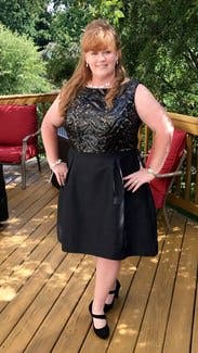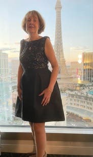 Rented this dress for a formal evening wedding at an elegant hotel and it was a winner. Not only was it beautiful but it was also comfortable and the pockets were a nice bonus. The back up size came in handy. I usually wear an 8 but it was a little snug and hard to fully zip, so I opted for comfort and wore the 10. Paired with sparkly gold heeled sandals and a clutch. We had a fun and fabulous evening!