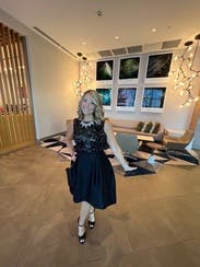 The whole process is so easy and seamless!! Everything came in on time and my dress fit well! I loved that the dress has pockets!! I got so many compliments on it. The V back goes down a bit too low to wear a normal bra, but I didn't personally have an issue with that. I thought the dress might be a little uncomfortable at the arms from the sequins but it wasn't at all! Would definitely recommend the dress and rent the runway!!