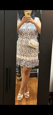 This dress is so adorable and perfect for an out door event. It is short! I ended up wearing a slip underneath so I could wear it to my work event. I got many, many compliments. Would def rent again.