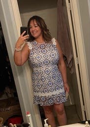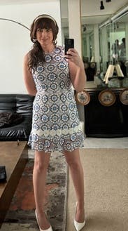 Beautiful detailing! Pretty blue details. Love this dress! I'm petite and it fit me well. Very comfortable fit also. I wore this for Easter and also a work event. I would have worn it to a graduation too but sent it back too soon. I'd definitely rent it again!
