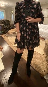 I wore this to a birthday party paired with black tights since it was still a bit cold out in April. It felt a little tight in the arms but otherwise great fit