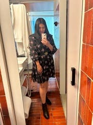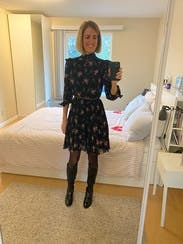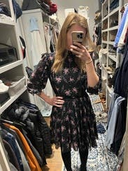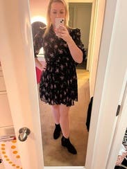 Very easy to style and so pretty! I work with combat boots and a long wool coat for a friend's baby shower. I'm usually a six and could have sized up in this. Wasn't quite too tight but I have a larger rib cage + I'm tall so the waist feature hit me a little higher than ideal. If you're on the fence about sizes I'd say size up, especially if you're tall!
