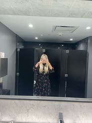 I wore this on a museum date with my husband, and it fit really nicely and flattered my curves. Would rent again