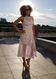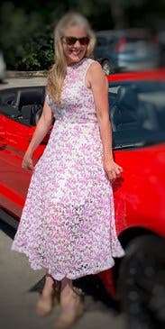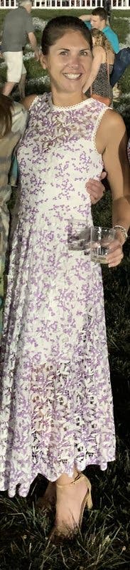 I loved this dress great way to end summer. I did get a little tripped up the first time going down stairs with heels. The heel was catching in the lace.