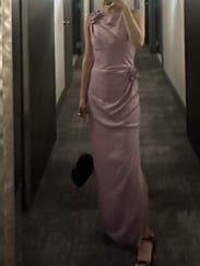 Dress was comfortable and elegant for a black tie optional wedding. I wore a size 16 to accommodate my bust — a 14 would have been perfect otherwise. In person, the dress is a bit more lavender than the photos suggest.