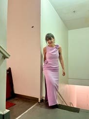 I am loving the ballet core & modern coquette trends. The rosettes on this gown are perfectly placed to gather the ruching details across the neckline & waist area. It was a really pretty lilac color - it looks like jersey material but was a thicker/ crepe like material that didn't stick to my skin. It fit like a true 4, but I might size down to get a more snug fit through the bust area.