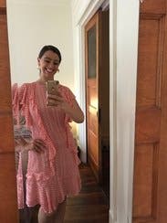 This dress was a great dress for vacation. The color was really amazing in person and loved the ruffles. The fabric was a little light and showed a little more than I liked but for vacation and as a dressy casual dress it was perfect. It fit exactly as described. You will probably be wise to wear spanx with this one.