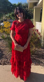 Needed a red dress for a traditional Nepalese wedding ceremony to take place on a Monday afternoon. I got compliments from everyone including the bride. Really great fit. Easy to move in. The dress has gorgeous detail and is a bit heavy. For my tall friends: I wore flats and it was the long was the perfect length. I probably could have gotten away with a 1 or 2 inch heel.