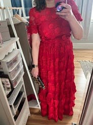 Absolutely loved this stunning red floral lace dress! The fit was perfect, and it looked amazing on—so many compliments throughout the night. I seriously considered purchasing it, but I couldn’t justify it with so few formal events on my calendar. A true showstopper for any special occasion!