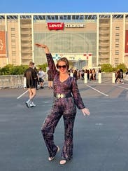 Wore this to the Eras Tour and got so many compliments! I’m 5’5” and wore flats (converse) and the legs were a little too long but we’re easily held up for walking. There’s a lining on the inside to keep the sequins from rubbing your skin.