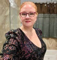 Don’t let the sequins deter you. This is so comfortable for long periods of wear, the fit was so flattering, and this piece is even more eye-catching in person. I have never received so many compliments on something I wore.