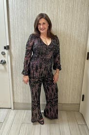 I love, love, love this jumpsuit! So incredibly glamorous, no need to wear shape wear and the compliments.....wow! You'll stand out in this sequined, sexy number.