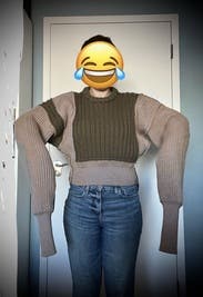 I was so excited to try this sweater - it looks amazing on the model in the pictures. But come to find out the sleeves are inexplicably 14 miles long, and bunching them up made me look like the Michelin Man. Not to mention the totally square-shaped front and back of the sweater, which is hardly flattering on a 5’4” frame. If you’re six feet tall with long arms, this one’s for you.