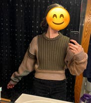 Never ended up wearing. Pretty cropped, super long sleeves, colors looked bad on my skin tone and way too heavy for the weather I live in.