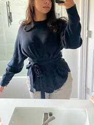 The fabric on this sweater was sooo nice, the fit was super flattering, and the tie was such a unique twist on an otherwise simple sweater. Loved it and got so many compliments