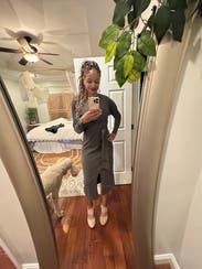 Great dress, I sent it back because the weather is getting warm and the dress is long sleeve and fabric was on the thicker side. I’ll probably rent again when the weather cools off again.
