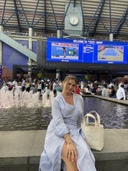 Such a flattering and fun dress for day— wore it out as a tourist, and to the office. For the latter, I pinned one of the pieces to drape across the front, making it a little less leggy. Rent this!