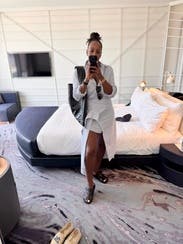I ended up wearing this with wide-legged slacks for dinner at a corporate convention. It was too short to feel appropriate otherwise. Received so many compliments. I will say this though. Normally I don’t wear anything shorter than knee length. But this might get me out of my comfort zone. I could see renting it again for a date night or evening out with friends and skipping the pants.