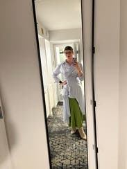 I am obsessed with this dress and rent it every single time I see it in my size. It is so flattering and unique and comfortable. Monse at its best! I’ve dressed it up and down and traveled with it. I literally love her.