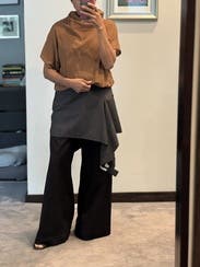 Deconstructed menswear - what’s not to love. Well it’s *almost* perfect with the exception that the amazing details (the inside of the “pants” that hang down) don’t actually show as much as on the photos. I am holding them down and out in the picture. In reality they kinda droop and the skirt looks more ordinary with an interesting hemline. Overall still great.