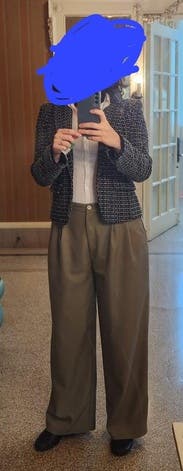 Pants were so comfortable and I loved the pleating and real pockets. They were super wide though, disproportionately to the waist, to the point of looking baggy. They would be PERFECT if only they were a bit more tailored/proportional