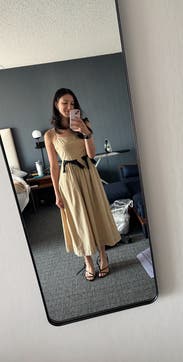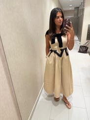 Cute dress, loved the bows. The color sort of washed me out and the fit was a bit tight in the waist. I think it would look great on a different body