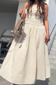 Off-white (Shell: 100% Cotton, Lining: 100% Polyester). Casual Dress. Strapless. Sleeveless. Pull on. Shoulder to hemline length: 44". Imported.