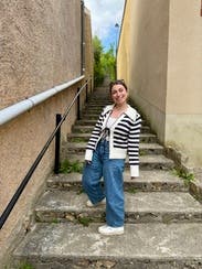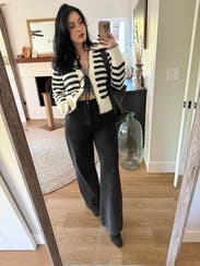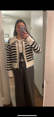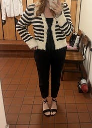 It was very cute. It's a tiny bit itchy and the stipe is more like a dark navy than black. Super flattering though