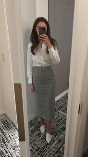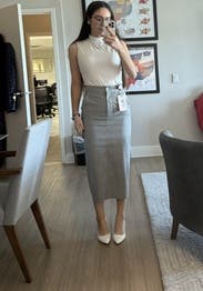 Smart, sexy, comfy, make you look and feel good skirt. Definitely renting again. Can wear through multiple seasons too. Winter into spring or summer