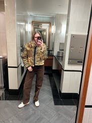 This jacket is SO cool and SO wearable. And warm! It’s got an oversized cut so take your usual size for that, size down for a less oversized vibe, do not size up. I’ve gotten so many compliments on this while wearing with slacks, jeans, red pants…I am really going to miss it when I eventually send it back 😭