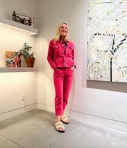 Add a splash of color to your off-duty look when you add this pink denim jacket by MOTHER over your favorite tee. Matching pants also available.