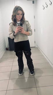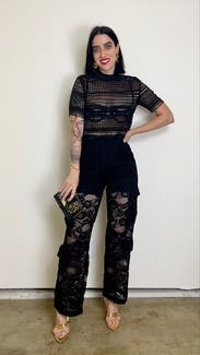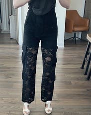 The lace fabric on these feels so expensive and the overall fit is divine!!! Absolutely loved the cargo pockets also. Needed to roll them down as they were a tad too loose in the waist. Will be renting again in a smaller size - everyone should rent these!!