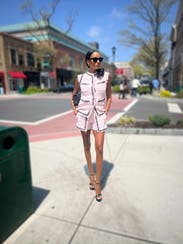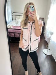 I love this sleeveless jacket paired with the matching shorts. Makes for a great pink sophisticated outfit. IG @bethielife