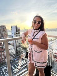 I mean do you die or do you die? RTR is coming through with the Sophia Richie Grainge inspired fits. I've been gawking at this set and finally was able to get my hands on it. I wore it for my best friends tea party themed baby shower. I sized up in the top/jacket thinking i may want it more oversized, which was not necessary. I should have stuck with my true size 6. Overall i was just glad to have a chance to rent this outfit. It's SO GOOD.