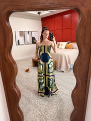 Silky and soft material with such a beautiful, vibrant pattern. You'll get a lot of compliments in this dress! It runs 1 size big so I suggest sizing down.
