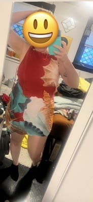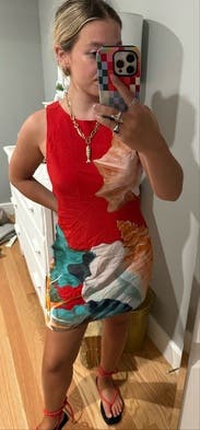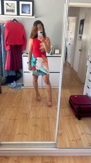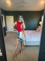 Absolutely loved this dress. It skimmed my body perfectly and was a fun and flirty outfit for a casual welcome-drinks-before-the-wedding event. Would be great for a date or with more casual shoes, for the daytime.