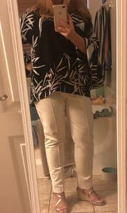 Great top. Flattering fit. Wore with RTR pants and also with my own. Great with off white pants and also black pants. Only negative was it was slightly dirty.