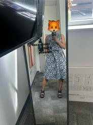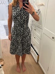 Mine did not come with the pictured belt but I used one I had and it helped, even though it’s definitely oversized. Loved the length and pattern. Paired with a blazer for work.