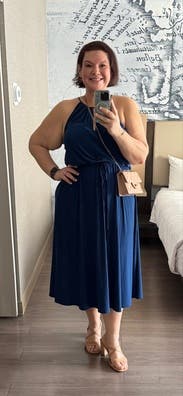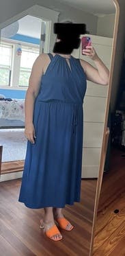 I loved this dress. It was very forgiving around my midsection and very comfortable. The armholes were a bit too big but it worked. I would wear again!