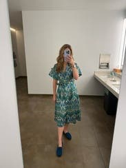 I loved this dress! The material is dreamy. I do recommend sizing down as this was very loose on me.