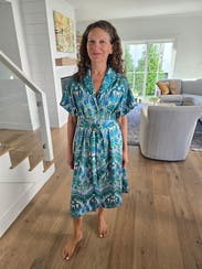 Compliments galore for this beautiful summery dress. The length was perfect for work and the fun colorful pattern carried it easily into dinner & drinks.
