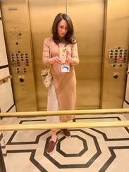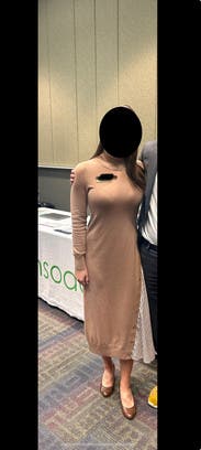 Great for a work event - very beige but still a little fun! It is form fitting. I wore with a belt.