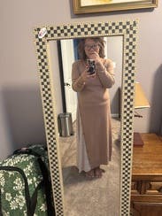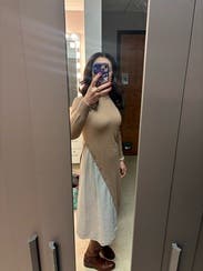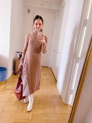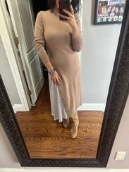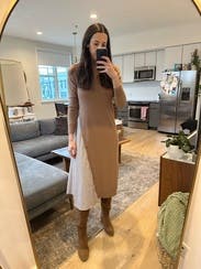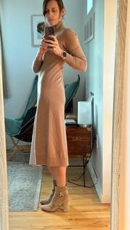Loved this dress! Wore it once with boots and once with heels. Was complimented so much both times. Seriously debated buying it
