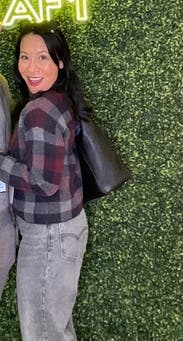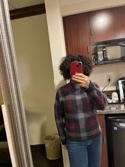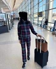 TTS. Love the plaid colors. This would have also looked nice with grey slacks.